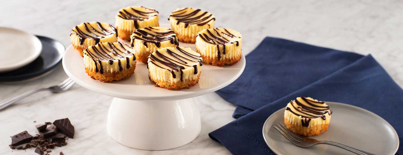 Reduce oven temperature to 325°F. Bake for 18 to 20 minutes or until just set. Let cool in pan on rack to room temperature. Refrigerate for at least 4 hours or overnight or until completely chilled. Remove cakes from paper liners.