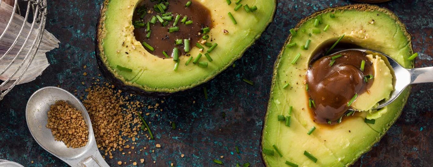 Slice whole avocado in half and remove seed. Add a few teaspoons of dressing to center of avocados. Season with fresh herbs to taste.